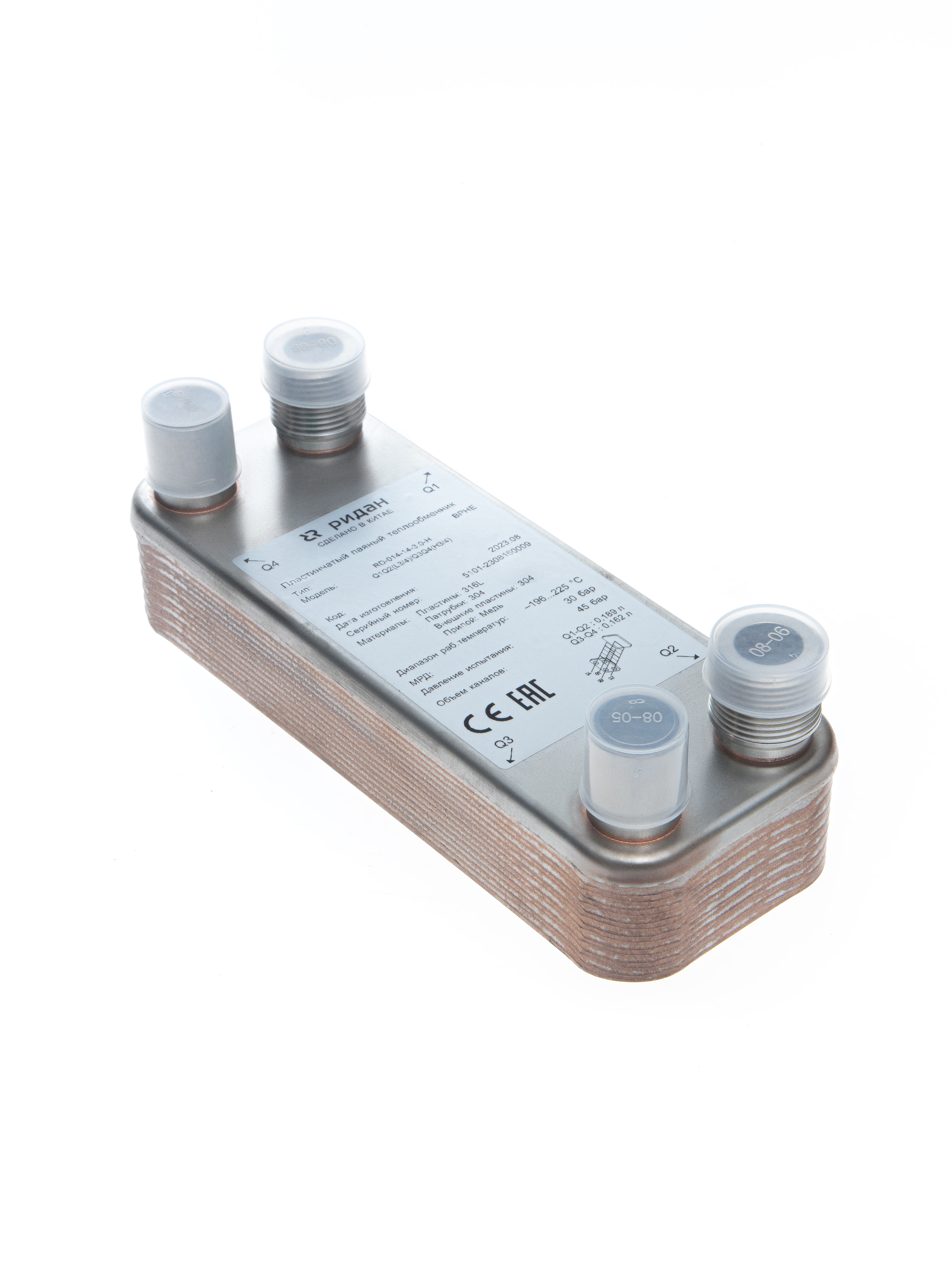 Ридан 021B0684R — Теплообменник пластинчатый паяный BPHE_B3-014-28-3,0-H, присоединительный штуцер Q1/Q2 — L3/4“, Q3/Q4 — H3/4“