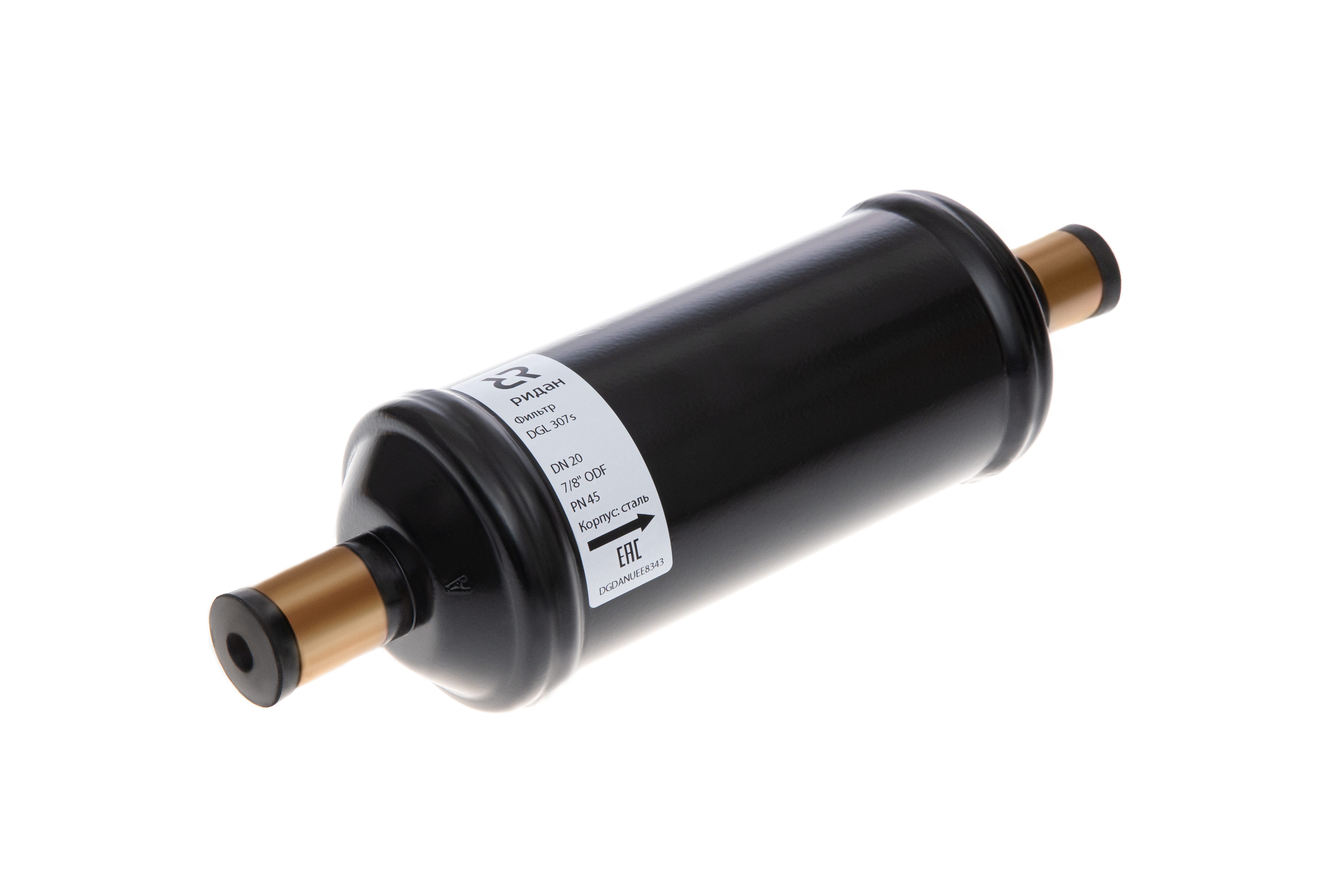 Ридан 023Z0071R — Герметичный фильтр-осушитель с твердым сердечником DML 307S (80% mol + 20% al), присоединительные патрубки 7/8"