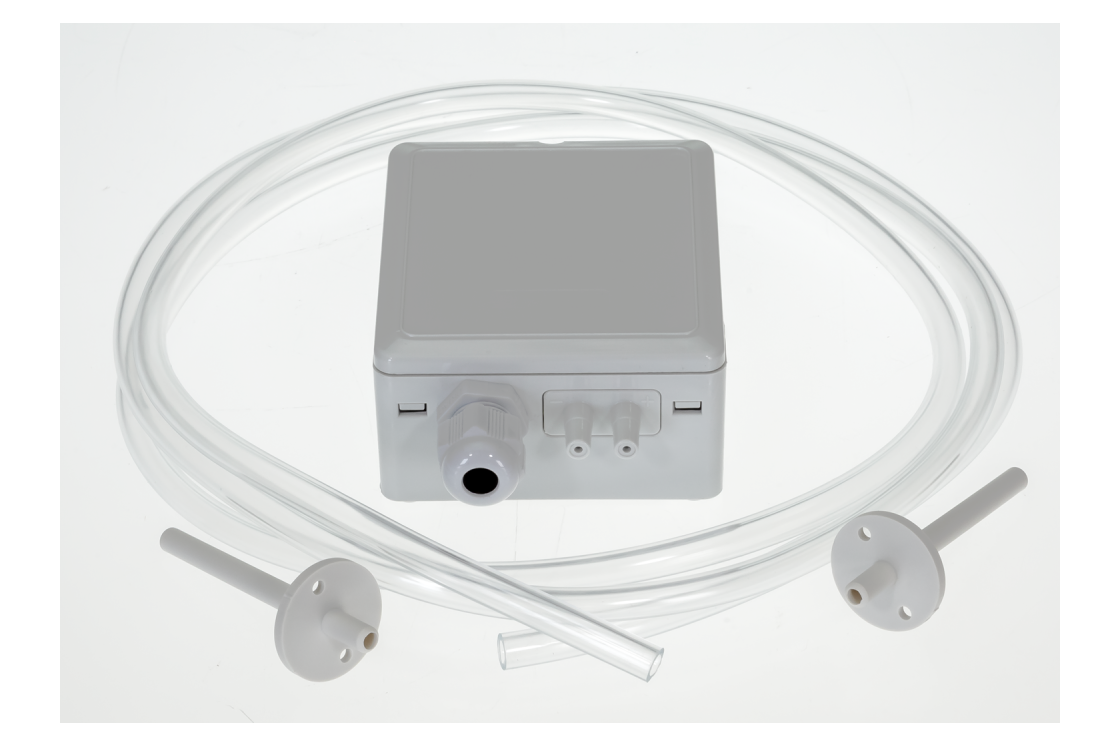 Преобразователь перепада давления - 1 шт., пластиковая трубка длиной 2 м - 1 шт., фланцы 120 мм — 2 шт., винты — 4 шт.