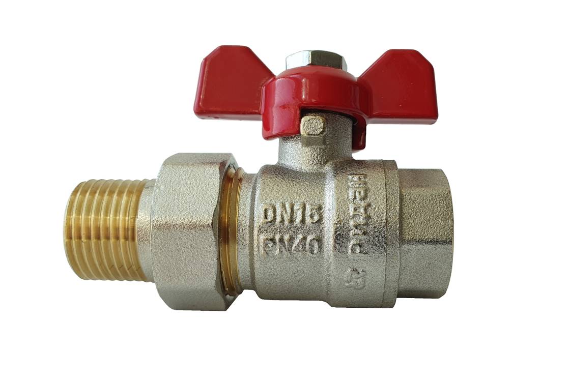 латунный полнопроходной с накидной гайкой и ниппелем