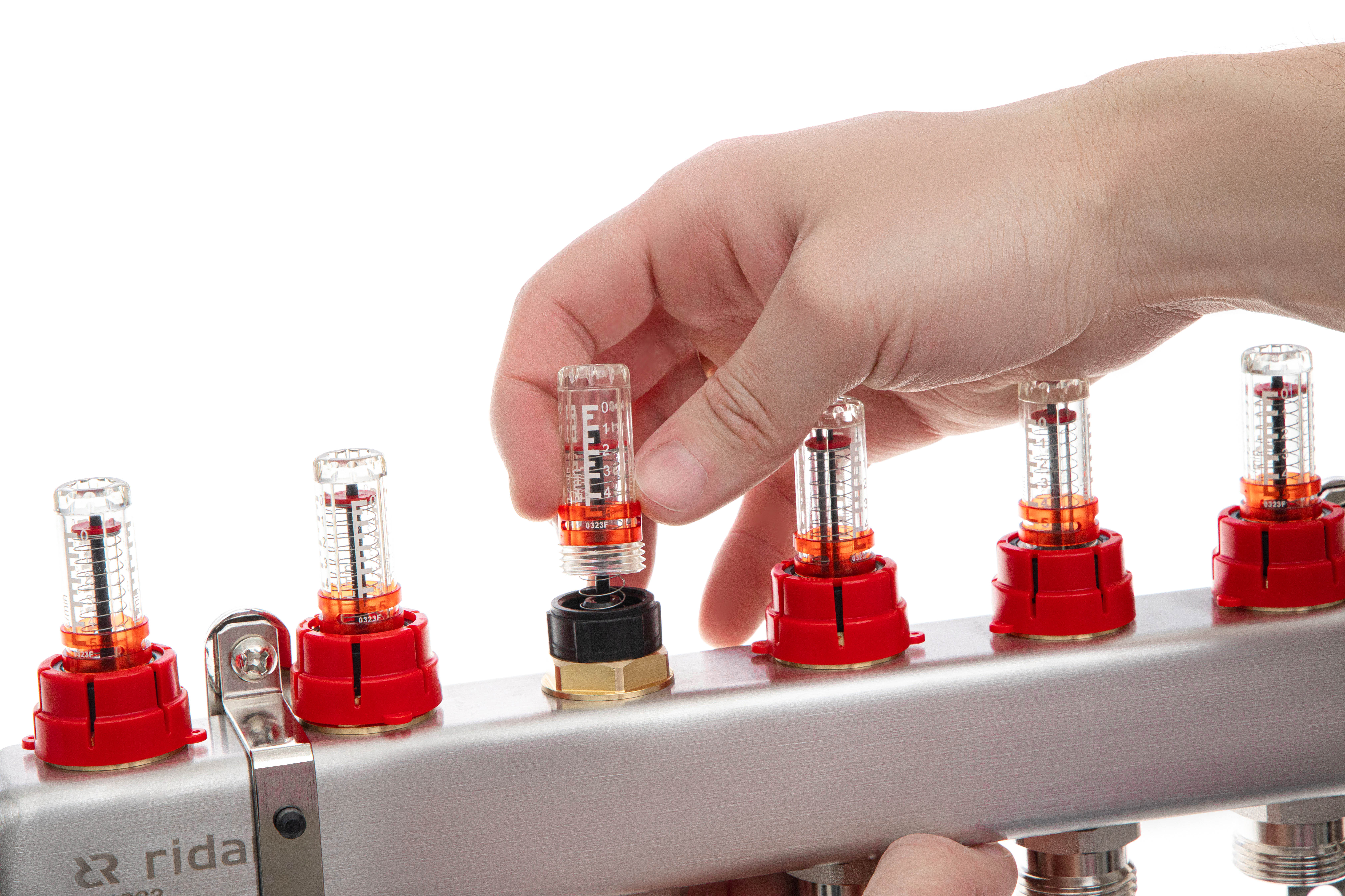 Ридан 088U0962R — Комплект коллекторов SSM-12RF set с расходомерами, кронштейнами, ручным воздухоотводчиком, сливным краном и торцевой заглушкой, 12 контуров